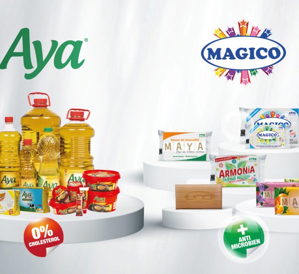 Depuis 2014, nous fabriquons et distribuons une huile de table légère, digeste et raffinée sous la marque Aya, élue par le Label des Consommateurs Africains par le Label Or.